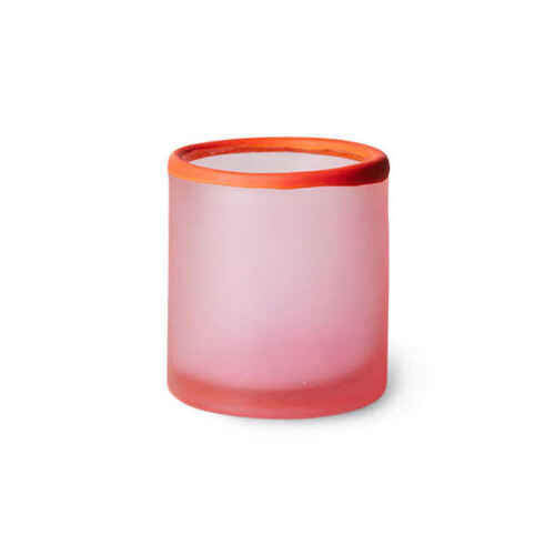 Deze kleurrijke theelichthouder Cherry komt uit de nieuwe collectie van HKliving. Deze roze met oranje theelichthouder heeft aan de bovenkant een aangezette rand in het oranje en is handgemaakt. Daardoor zijn er verschillen zichtbaar. Met deze theelichthouder geef je je tafel, vensterbank of buitentafel een vleugje kleur en wat licht. Dit theelichtje is gemaakt van glas en heeft een afmeting van Ø9x10cm. Verkrijgbaar in vijf fleurige kleurtjes, erg leuk om met elkaar te combineren! Bekijk hier alle theelichthouders van HKliving! LET OP: Dit artikel is uitlopend, daarom geldt OP=OP! Nog 3 op voorraad (onder voorbehoud) -