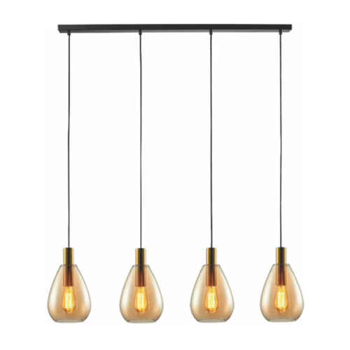 Hanglamp Dorato 4-lichts Balk – Goud/Amber Glas