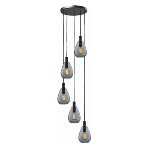 Hanglamp Dorato 5-lichts Rond – Zwart/Smoke Glas