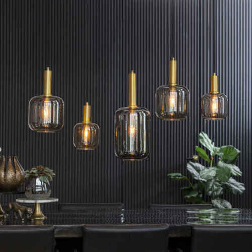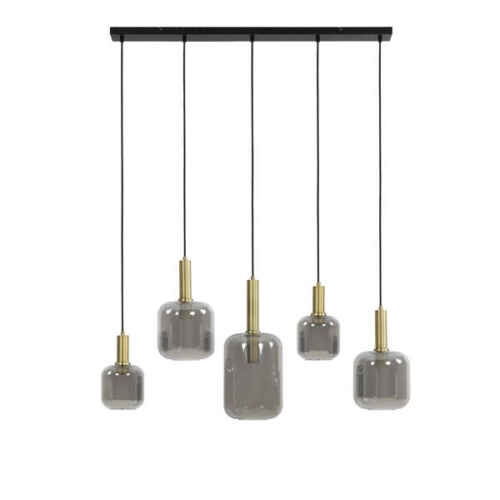 Hanglamp LEKAR 5-lichts 110x22x32cm – Antiek Brons/Smoke Glas