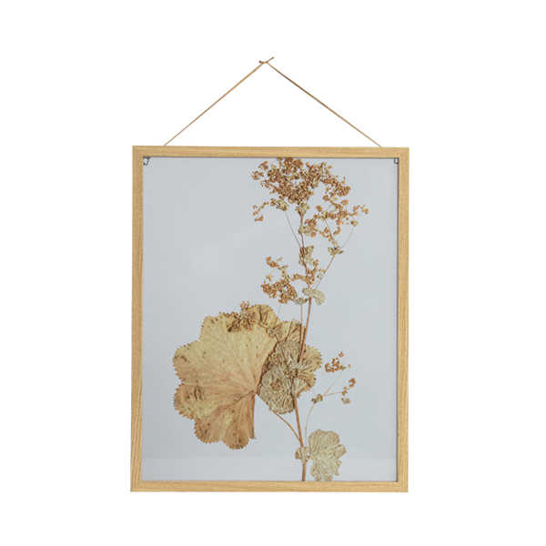 Deze Potpourri fotolijst van 50x40cm, uit de collectie van BePureHome, is gemaakt van naturel MDF hout en is voorzien van glasplaten. Daartussen is een dunne print geschoven welke is voorzien van een bloemenprint (deze is verwijderbaar). De achterzijde van de lijst is voorzien van 2 haken waardoor een touwtje zit.