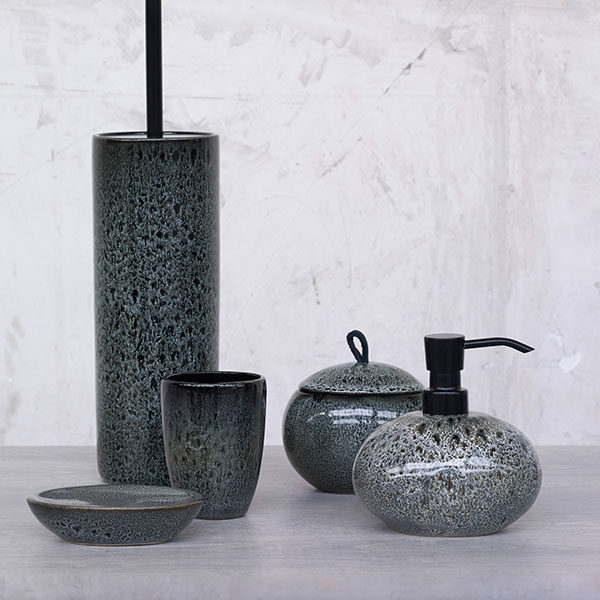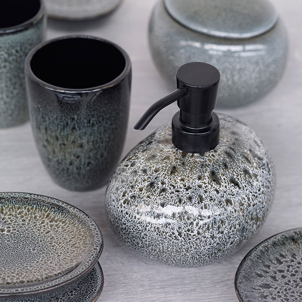Stoere, olijfzwarte zeeppomp uit de op de natuur geïnspireerde Ugo serie van Aquanova. De zeeppomp is met de hand afgewerkt, wat ervoor zorgt dat ieder item uniek is.