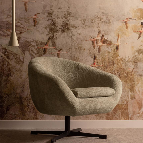 Deze zachte fauteuil Desert komt uit de collectie van BePureHome. Deze lichtgroene draaifauteuil heeft een retro design en is zeer comfortabel. Een robuust ontwerp met een bolvormige zitting.