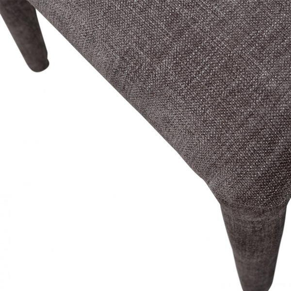 De compact geweven stof is gemaakt van 100% polyester en heeft een Martindale van 100.000. Hierdoor heeft de stoel een zachte grip en voelt comfortabel aan. De stof is opvallend door de lichte kleurmelange in de garens, wat zorgt voor een sprekende diepte in het meubelstuk.