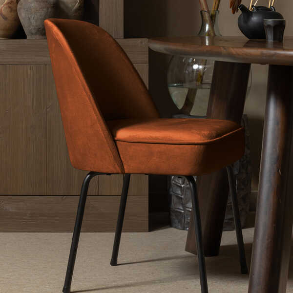 Deze stijlvolle eetkamerstoel Vogue komt uit de collectie van het Nederlandse merk BePureHome. Deze roestkleurige eetkamerstoel zit super comfortabel en de zachte stof en vriendelijke ronde vormen maken deze chique eetkamerstoel tot een sieraad voor het interieur van nu. Door het slanke ontwerp past deze stoel goed in meerdere woonstijlen.
