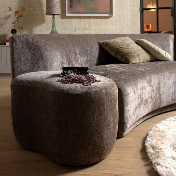 Deze organische poef Popular komt uit de collectie van BePureHome. Deze taupe kleurige poef kun je gewoon los gebruiken, maar ook zeker heel goed combineren met de rest van de Popular serie. De elementen zijn oogstrelend vanwege de grof geweven chenille met onregelmatig weefpatroon, de volledige stoffering van top tot teen en het organische design wat naadloos in elkaar overloopt.