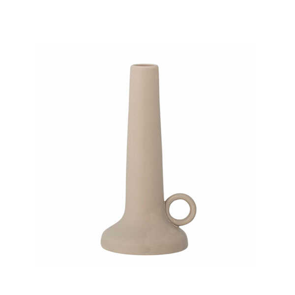 Deze mooie kandelaar Kin komt ui de collectie van Bloomingville. Deze kandelaar is een eenvoudige en elegante kandelaar die met zijn organische vorm en kleine handvat toch indruk maakt. De afmeting van deze kandelaar is 9x10x19,5cm. Geschikt voor kaarsen met een dikte van 2,2cm. De kandelaar is gemaakt van keramiek en heeft een mooie naturel tint om die nordic look te bereiken. Deze combinatie van vorm en materialen resulteert in een prachtige kandelaar die onopvallend maar toch een effectief decorstuk is in elk huis.