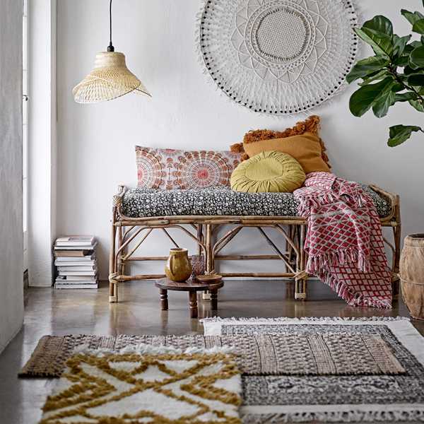 Dit gave vloerkleed van jute uit de collectie van Bloomingville heeft een prachtige, geometrische opdruk in een zwarte kleur. Het vloerkleed is 140x70cm en is een echte sfeermaker in je interieur.