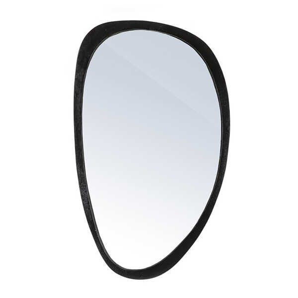 Deze gave Plecto spiegel heeft een unieke, abstracte vorm en een gaaf frame van mango hout (zwart gelakt). De spiegel is zowel horizontaal als verticaal aan de wand te bevestigen.