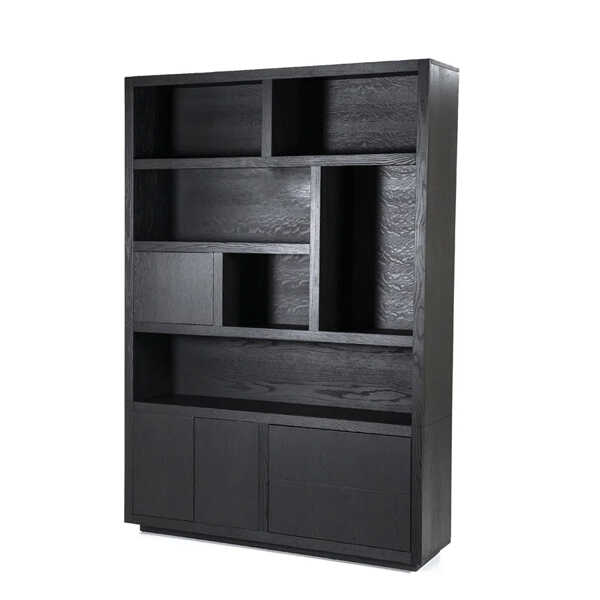 Dit stoere kabinet Helsinki 3-deurs komt uit de nieuwe collectie van het merk Eleonora. Deze opbergkast is gemaakt van eikenhout en eiken fineer en is afgewerkt met een zwarte coating. Dit kabinet is voorzien van 3 deuren, 2 lades en 6 open vakken. Genoeg ruimte om hem helemaal naar jouw smaak in te richten. Hierdoor past deze kast binnen verschillende interieurstijlen. Deze prachtige kast Helsinki is greeploos en is voorzien van een push-to-open systeem. De afmeting van dit kabinet is 150x42x220cm en bestaat uit 2 delen. Verkrijgbaar in verschillende maten.