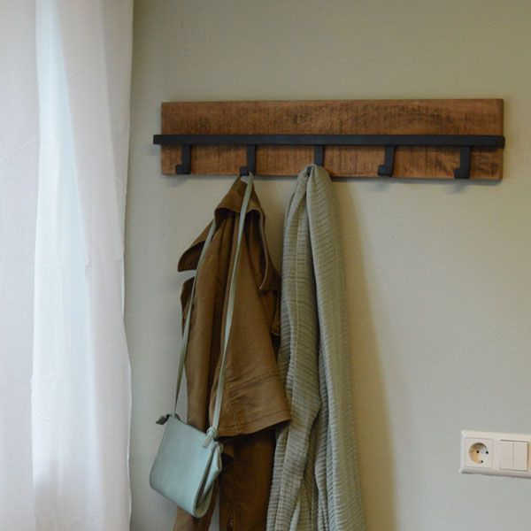 Door de combinatie van het naturel hout en de stoere zwart metalen haken, is deze Ethan kapstok uit de Brix collectie van Livingfurn een stoere sfeermaker in je interieur. De kapstok is eenvoudig aan de wand te bevestigen en heeft 5 haken.
