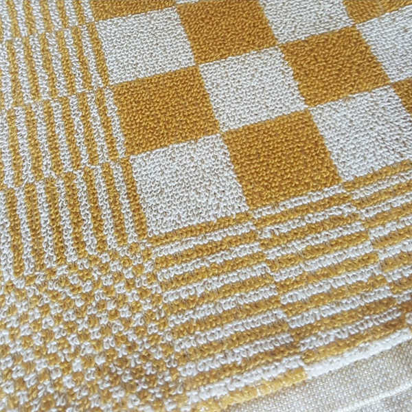 Deze okergele geruite keukendoek uit de collectie van DDDDD is erg populair! De geruite keukendoeken worden veel gebruikt in zowel de professionele als in huiselijke keukens. Het katoen neemt veel vocht op, zonder dat de doek snel verzadigd raakt.