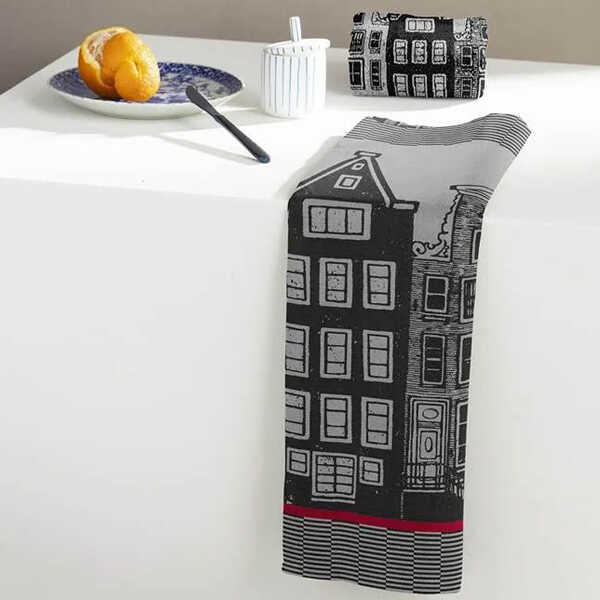 Deze gezellige keukendoek Canal komt uit de collectie van DDDDD. Nostalgie en moderniteit komen mooi samen in de speelse print met zwart-witte grachtenhuisjes. De keukenhanddoek is niet alleen leuk om te zien, maar ook ideaal om snel je handen mee af te drogen na de afwas. Door het gebruik van 100% katoenen badstof van goede kwaliteit, voelt deze DDDDD keukendoek heerlijk zacht en soepel. De sterk vocht absorberende stof droogt snel. Deze keukendoek heeft een afmeting van 50x55cm. Erg leuk in combinatie met de theedoek uit dezelfde serie. Bekijk hier de gehele Canal serie!