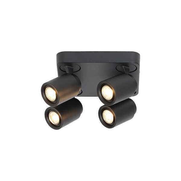Deze vierkante 4-lichts Razza spot heeft een modern uiterlijk en is zowel draaibaar als kantelbaar. De lamp heeft een strakke vormgeving, is volledig gemaakt van metaal en is geschikt voor een GU10 lichtbron.