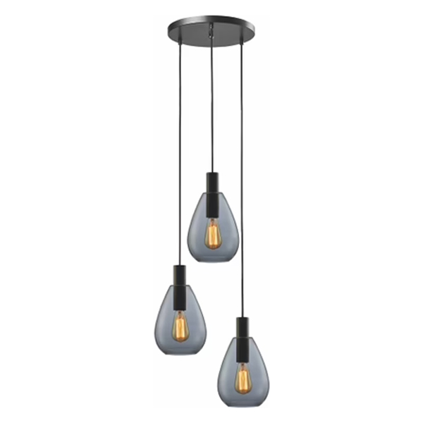Hanglamp Dorato 3-lichts Rond – Zwart/Smoke Glas