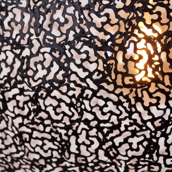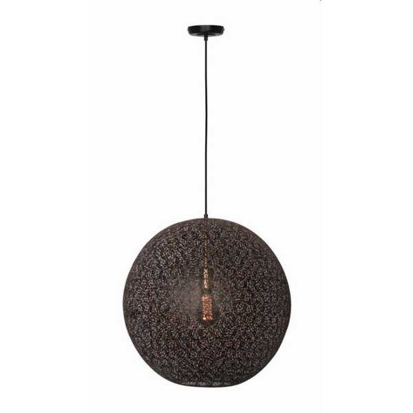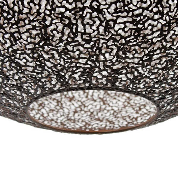 Deze chique hanglamp Oronero is gemaakt uit kleine metalen deeltjes die samen de ronde kap vormen. De deeltjes zijn mat zwart aan de buitenzijde en goud aan de binnenzijde. Hierdoor krijgt de metalen bol een luxe uitstraling en tevens zorgt het goud voor een warme sfeervolle verlichting. Het goud is doorgetrokken in de fitting binnenin de kap om het geheel af te maken. De lamp heeft een diameter van 50cm en is voorzien van een E27 fitting. Het snoer is naar wens in te korten zodat u de lamp overal kunt ophangen. Door z’n grootte past de lamp mooi boven een grote ronde tafel of met twee naast elkaar boven een langwerpige tafel. Ook verkrijgbaar in een kleinere maat.