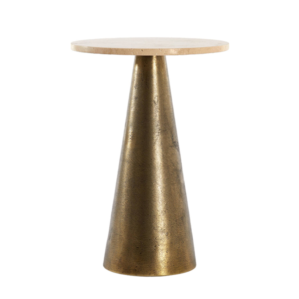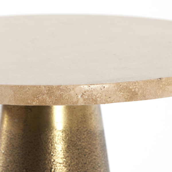 Bijzettafel YNEZ Ø36x51cm Travertin – Zand / Antiek Brons