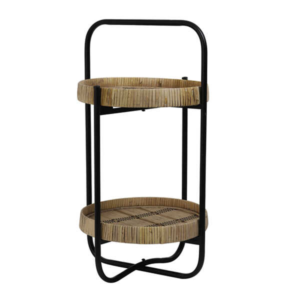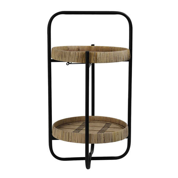 Deze moderne etagère LORENA met 2 lagen komt uit de collectie van Light & Living. Deze etagère in rotan stijl kan je makkelijk verplaatsen door middel van het handvat en de stootvaste randen. Het frame is gemaakt van mat zwart metaal en de lagen zijn gemaakt van rotan. Elke laag is voorzien van een leuk patroon. De afmeting van dit product is Ø33×59,5cm. Door de natuurlijke kleuren in combinatie met zwart en het bamboe materiaal is deze etagère gemakkelijk te combineren. Gebruik LORENA voor het serveren van lekkere hapjes of combineer hem met wat waxinelichtjes voor een extra gezellige sfeer. Ook verkrijgbaar als etagère met 3 lagen. Bekijk hier beide LORENA etagères!