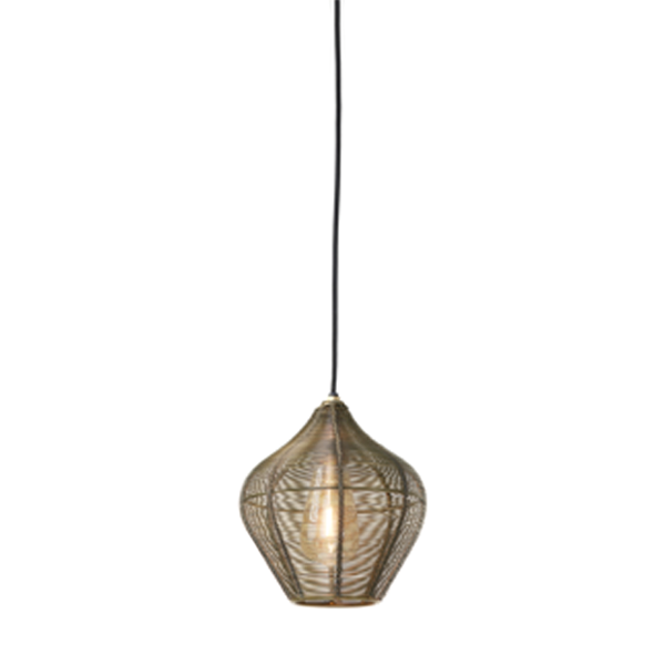 Deze gave bronzen ALVARO hanglamp komt uit de collectie van Light & Living. Deze hanglamp is volledig gemaakt van metaal. De hanglamp heeft een speelse vorm en door het gaas patroon wordt het licht op een sfeervolle manier verspreid. De afmeting van de hanglamp is 20x22cm. Verkrijgbaar in meerdere maten.