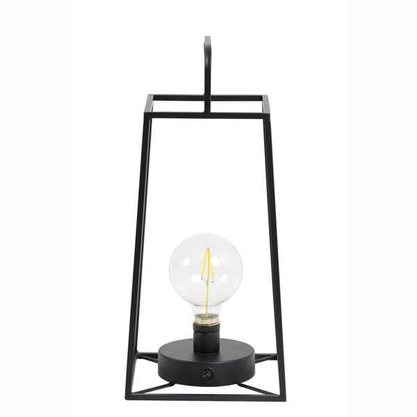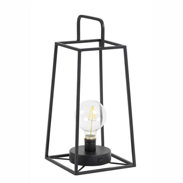 Tafellamp Lantaarn LED + Lamp FAUVE 17x37cm – Mat Zwart