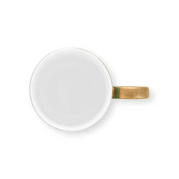 Dit mooie mokje met oor is onderdeel van de Pip Chique collectie van Pip Studio. Deze kleine groene mok is gedecoreerd met gouden details voor een luxe uitstraling. Het porselein is gemaakt van bone China, een hoogwaardig dun porselein met een verfijnd design. De inhoud van deze mok is 250ml. Perfect te combineren met de rest van de Pip Chique collectie. Ook verkrijgbaar in 350ml.