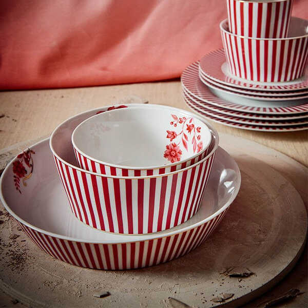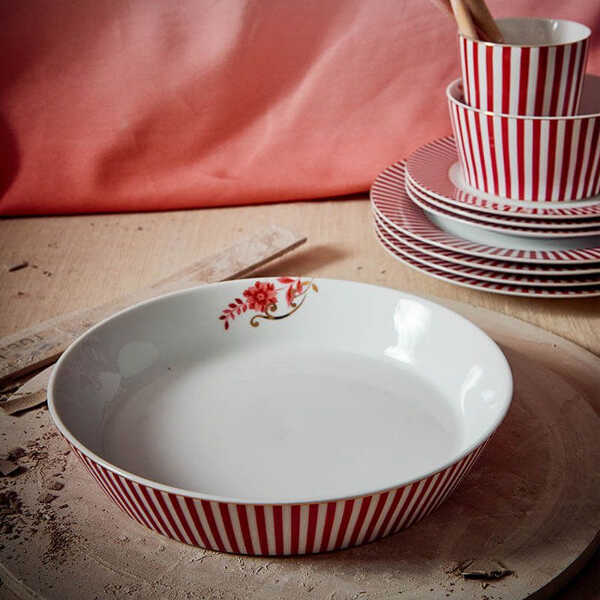 Dit mooie diepe bord van Ø21,5cm is onderdeel van de Royal Stripes collectie van Pip Studio. Dit bord heeft een donkerroze gestreept dessin en is afgewerkt met gouden details. De donker roze geschilderde bloesems met gouden details geven het bord een elegante twist. Ook te gebruiken als pastabord. Perfect om te mixen met de andere borden uit deze collectie. Bekijk hier de volledige Royal Stripes van Pip Studio!