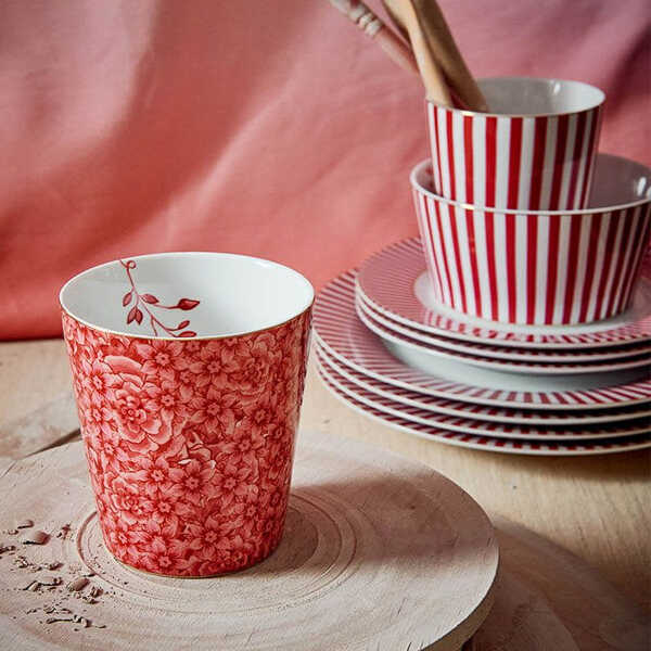 Pip Studio Royal Stripes Mok Flower 230ml – Donker Roze