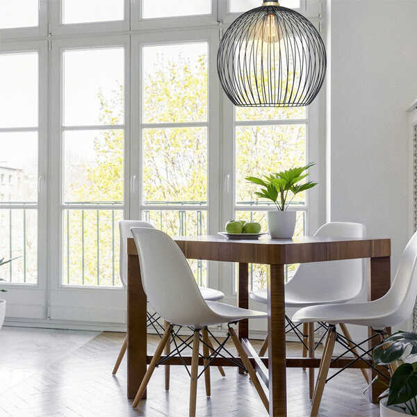 De hanglamp Aureole komt uit de Mexlite collectie van Steinhauer. Deze moderne hanglamp heeft een bol met een doorsnede 44cm en voorzien van een grote fitting (E27). Door de open kap is de lamp goed te combineren met een Decofilament als lichtbron. Hiermee geeft de lamp nog meer sfeer. De lamp is bij montage is hoogte verstelbaar tot maximaal 170cm. De lamp wordt geleverd met 2 verschillende ringen, een zwarte en een gouden ring, hiermee kunt u zelf de look van de lamp bepalen. In combinatie met muurdimmer en geschikte lichtbron is de lamp ook dimbaar.