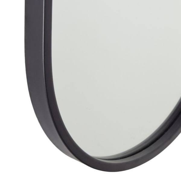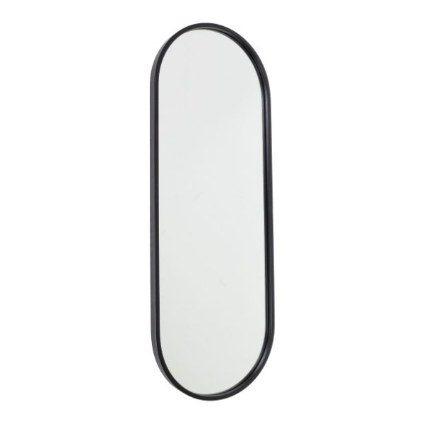 Gave ovale spiegel met zwart metalen rand. Door de subtiele en stoere afwerking komt de spiegel aan iedere muur tot zijn recht!