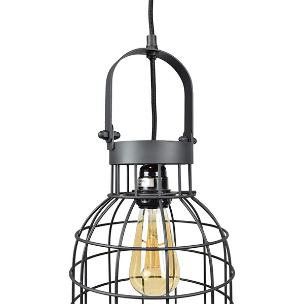 Stoere zwarte draadlamp van Urban Interiors. De open hanglamp is leuk te combineren met een opvallende kooldraadlamp en past perfect in een industrieel interieur.