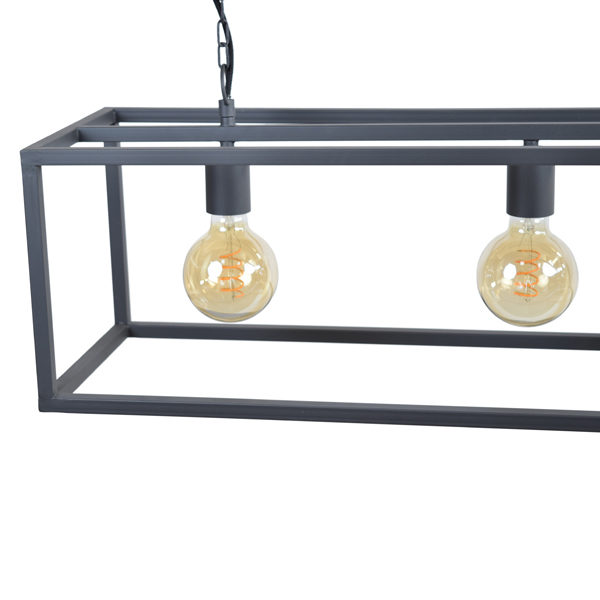 Gave zwart/antraciet kleurige metalen 4-lichts hanglamp dat dankzij het stoere, strakke frame een echte eyecatcher is in het interieur. Draai er mooie kooldraadlampen in voor een sfeervol effect.