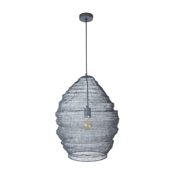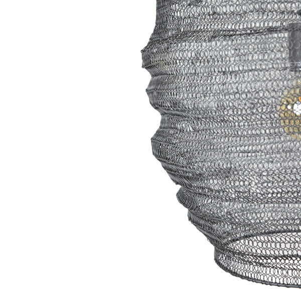 Deze zwarte hanglamp is volledig gemaakt van zwart gaas en heeft een doorsnee van 45cm. Draai er een kooldraadlampje in voor een leuk effect.