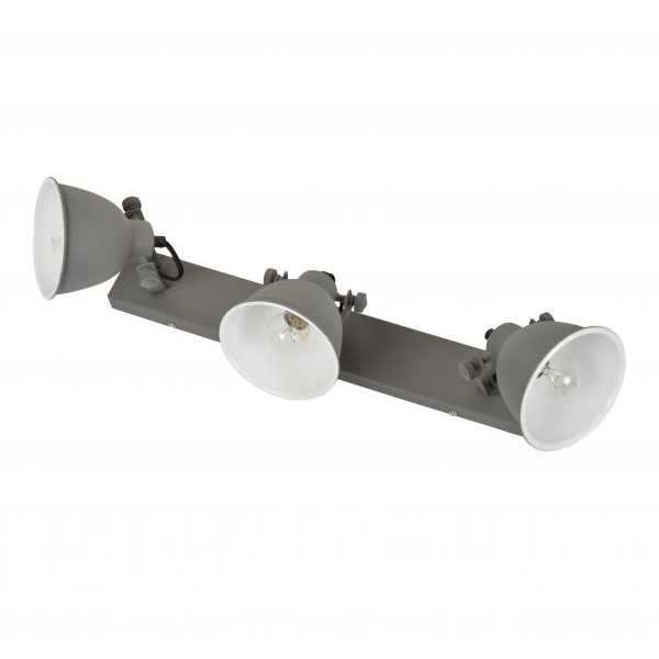 Gave 3-lichts plafondlamp/spot met een mooie vintage grijze afwerking (poedercoating). Elk kapje kan in de gewenste richting gesteld/gekanteld worden, waardoor het licht op de juiste plaats komt.