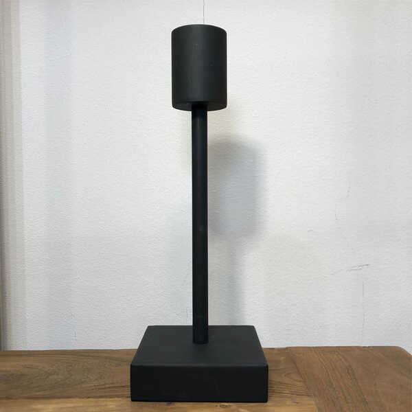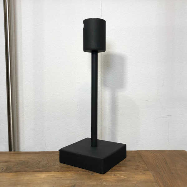Simpel, zwart metalen tafellampje. Erg leuk om te combineren met een grote kooldraadlamp.