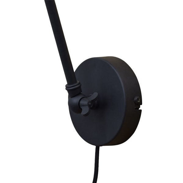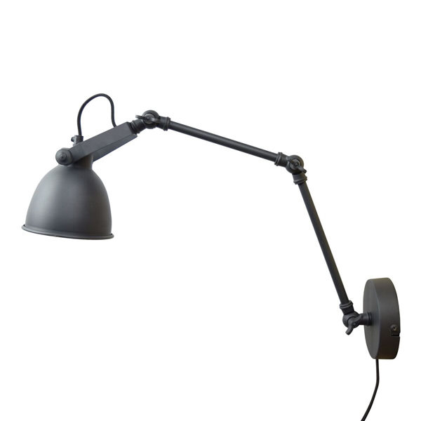 Stoere zwarte wandlamp die dankzij de stoere scharnieren volledig naar wens te verstellen is. De lamp is eenvoudig aan de wand te bevestigen.