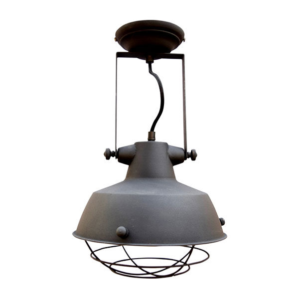 Deze wandlamp is echt een blikvanger in elk stoer interieur. De industriele details, en de kooi onder de kap van 27cm doet denken aan de oude fabriekslampen. Aan deze lamp zit een stoffen snoer, dit geeft de lamp een exclusieve uitstraling. Deze lamp kan zowel aan de wand als aan het plafond gemonteerd worden en is gemaakt in de kleur zwart.