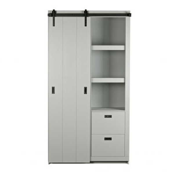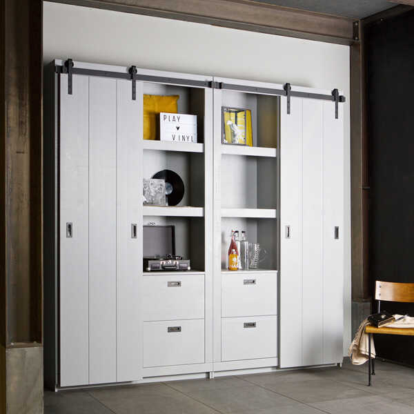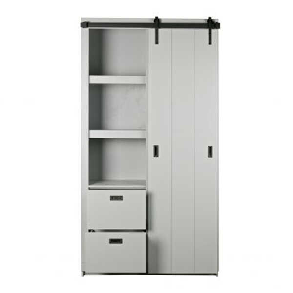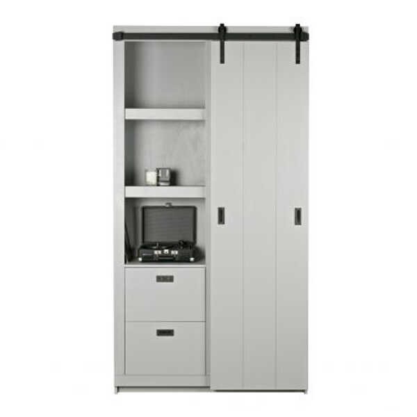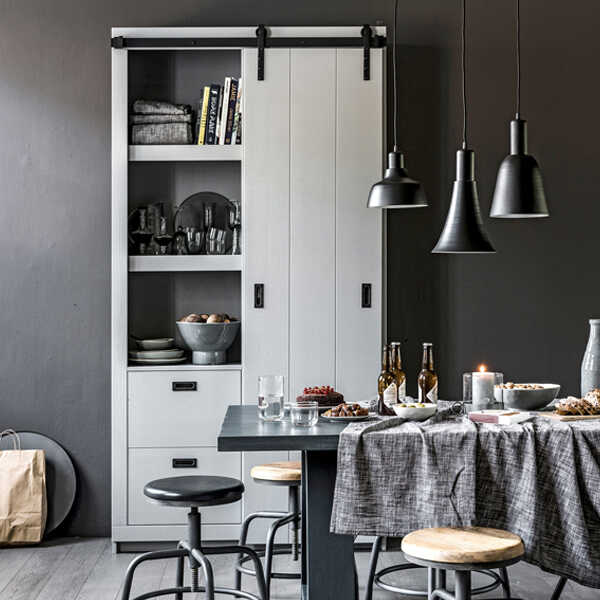 Deze stoere Slide Barn kast komt uit de collectie van vtwonen. Deze grijze kast is alles behalve een standaard opberg- of boekenkast. Je kunt er jouw eigen invulling aan geven. De kast beschikt verdeeld over twee zijdes over twee dikke legplanken en aan de onderzijde 2 lades, één zijde altijd zichtbaar en de andere zijde afgedekt door een schuifdeur. De schuifdeur in metalen rail kan dus van rechts naar links geschoven worden. De kast is gemaakt van massief, FSC gecertificeerd, grenenhout en het gebruikte hout is grof bezaagd. Een stoer kast met mogelijkheden. Deze slide kast is gemaakt van grof bezaagd hout. Dit wil zeggen dat het hout overdwars gezaagd is, waardoor het een rustiek geschuurd uiterlijk krijgt. De kast krijgt hierdoor een doorleefde vintage uitstraling. Door deze bewerking kunnen oneffenheden en kleine scheurtjes extra zichtbaar zijn. Dit zijn kenmerken van grof bezaagd hout. Ieder exemplaar is hierdoor uniek! De afmeting van de kast is 230x122x37cm. Doordat het beslag er iets bovenuit komt is de totale hoogte 232cm. De kast wordt geleverd als bouwpakket met een duidelijke montage-instructie. De Slide Kast Barn is verkrijgbaar in de kleuren: soap, wit, zwart en betongrijs. Bekijk hier alle kleuren!