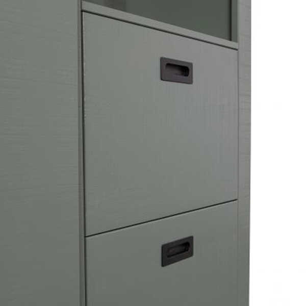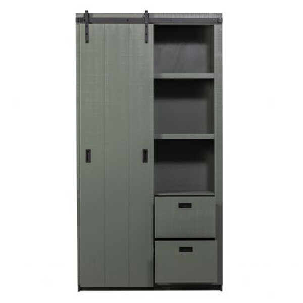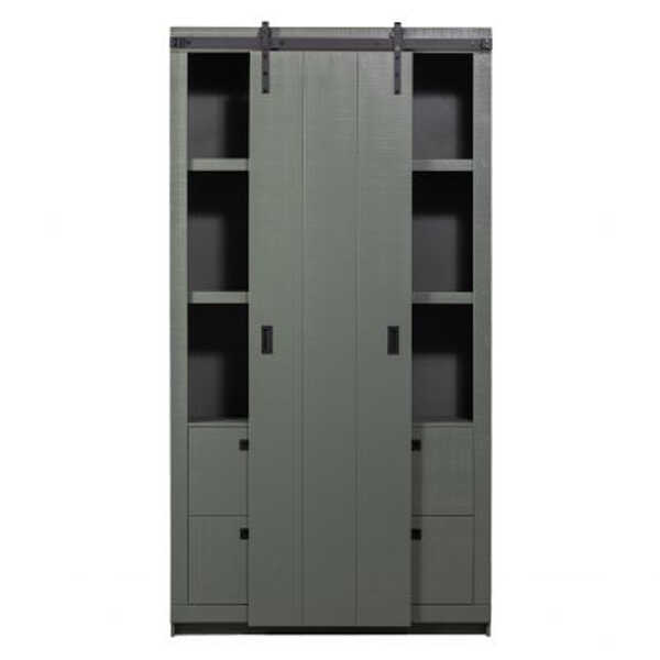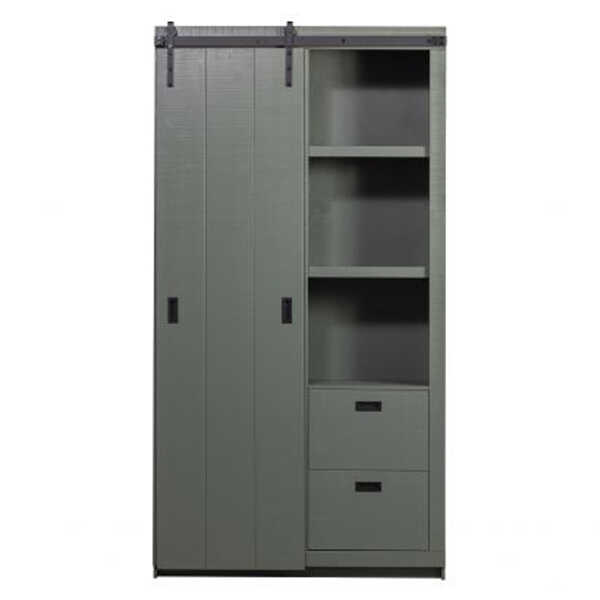 Deze stoere Slide Barn kast komt uit de collectie van vtwonen. Deze grijsgroene kast is alles behalve een standaard opberg- of boekenkast. Je kunt er jouw eigen invulling aan geven. De kast beschikt verdeeld over twee zijdes over twee dikke legplanken en aan de onderzijde 2 lades, één zijde altijd zichtbaar en de andere zijde afgedekt door een schuifdeur. De schuifdeur in metalen rail kan dus van rechts naar links geschoven worden. De kast is gemaakt van massief, FSC gecertificeerd, grenenhout en het gebruikte hout is grof bezaagd. Een stoer kast met mogelijkheden. Deze slide kast is gemaakt van grof bezaagd hout. Dit wil zeggen dat het hout overdwars gezaagd is, waardoor het een rustiek geschuurd uiterlijk krijgt. De kast krijgt hierdoor een doorleefde vintage uitstraling. Door deze bewerking kunnen oneffenheden en kleine scheurtjes extra zichtbaar zijn. Dit zijn kenmerken van grof bezaagd hout. Ieder exemplaar is hierdoor uniek! De afmeting van de kast is 230x122x37cm. Doordat het beslag er iets bovenuit komt is de totale hoogte 232cm. De kast wordt geleverd als bouwpakket met een duidelijke montage-instructie. De Slide Kast Barn is verkrijgbaar in de kleuren: soap, wit, zwart en betongrijs. Bekijk hier alle kleuren!