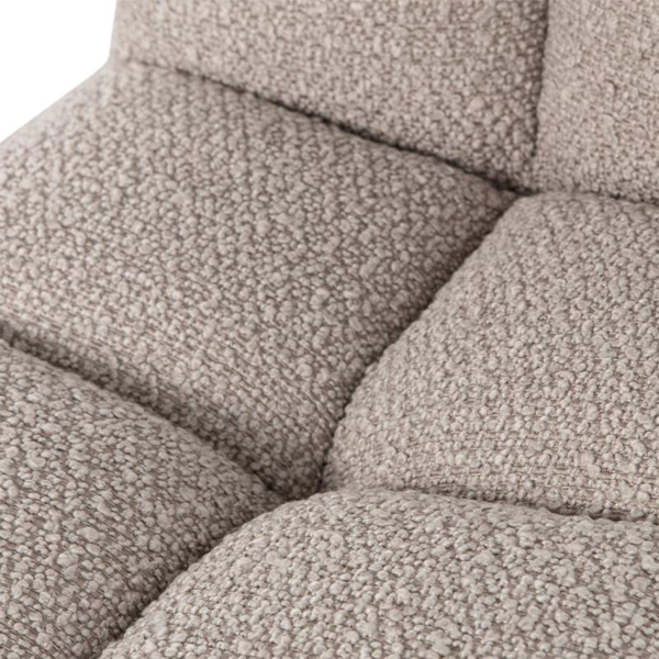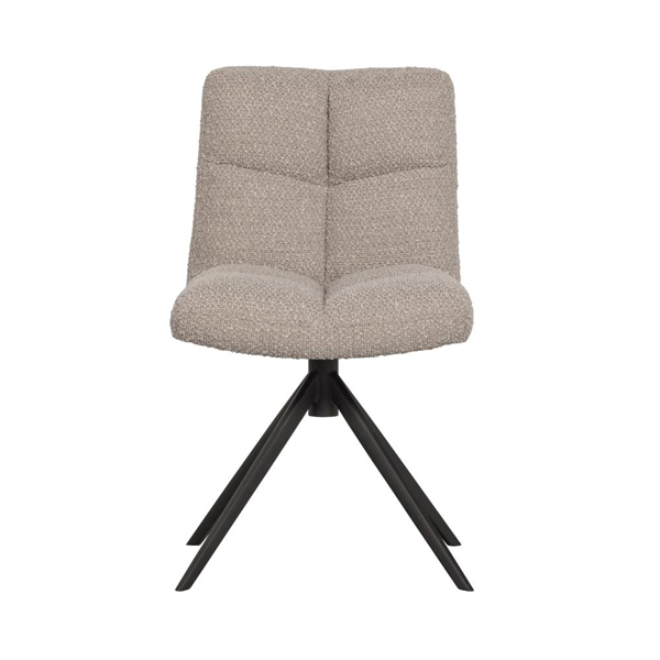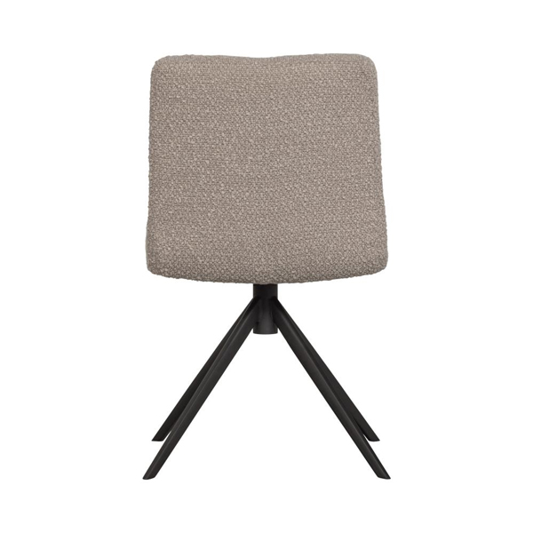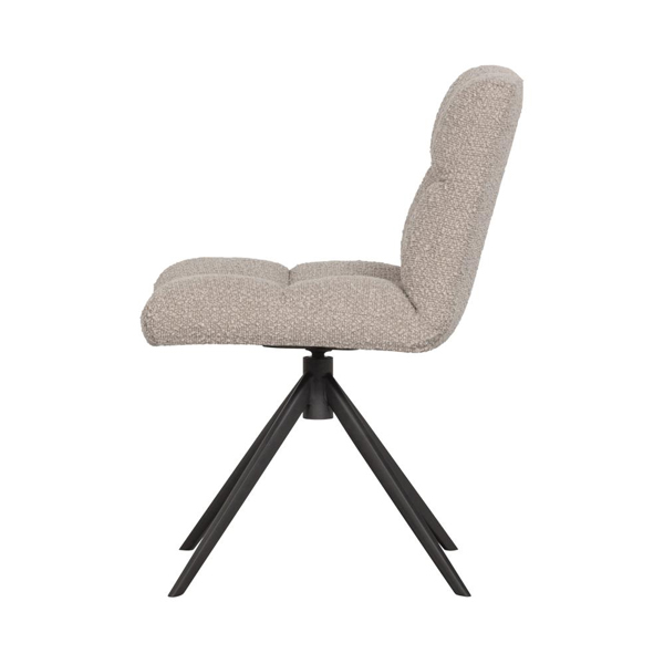 Deze draaistoel is bekleed met een superzachte bouclé stof, genaamd Cres. De samenstelling van 100% polyester maakt de stoel zeer eenvoudig in onderhoud. Deze stoel heeft een zwart, metalen onderstel met vier poten en een soepel draaisysteem.