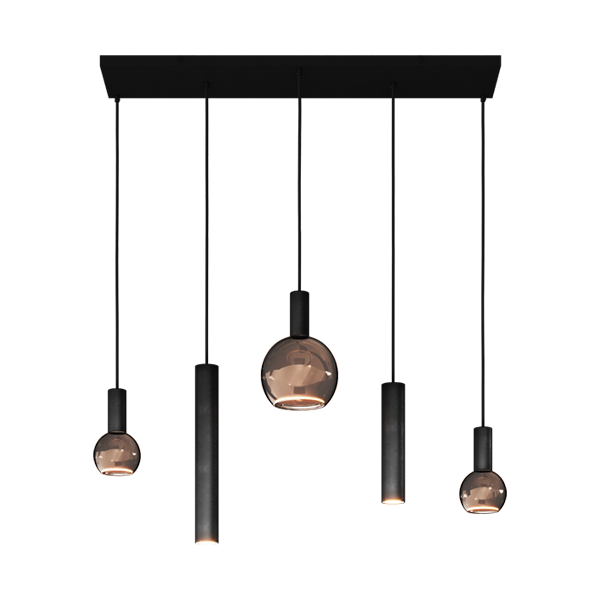 Deze speelse hanglamp Riva komt uit de design collectie van het hoogwaardige merk ZTaHL. Deze opvallende serie heeft door de combinatie van verschillende fittingen (GU10 en E27) en verschillende hoogtes een speels effect. De hanglamp wordt een echte blikvanger door te combineren met de unieke Segula lichtbronnen. De hanglamp wordt geleverd inclusief lichtbronnen. De balk heeft een afmeting van 100x22cm