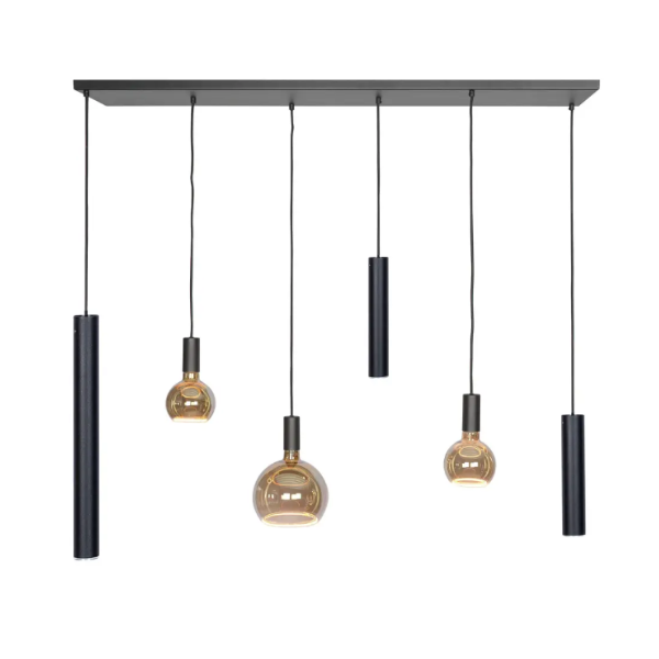 Deze speelse hanglamp Riva komt uit de design collectie van het hoogwaardige merk ZTaHL. Deze opvallende serie heeft door de combinatie van verschillende fittingen (GU10 en E27) en verschillende hoogtes een speels effect. De hanglamp wordt een echte blikvanger door te combineren met de unieke Segula lichtbronnen. De hanglamp wordt geleverd inclusief lichtbronnen. De balk is 120x22cm