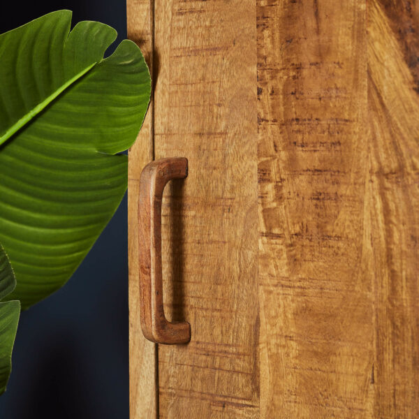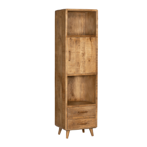 Deze stoere boekenkast Omaha is volledig uitgevoerd in mangohout. Dit meubel is voorzien van twee lades en één deur. De boekenkast is ingelegd met verschillende stroken gelakt hout, waar het meubel zijn eigentijdse karakter aan te danken heeft.