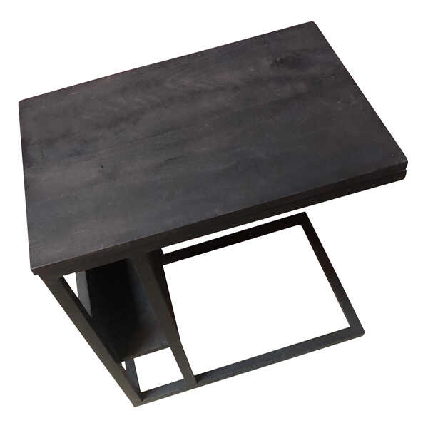 Deze zwarte bijzet-/laptoptafel Jennifer is uitgevoerd in massief mangohout. Het frame is gemaakt van metaal dat is afgewerkt met een zwarte lak. De laptoptafel is voorzien van een blad en een postvak. De afmeting van deze tafel is 48x32x53cm.