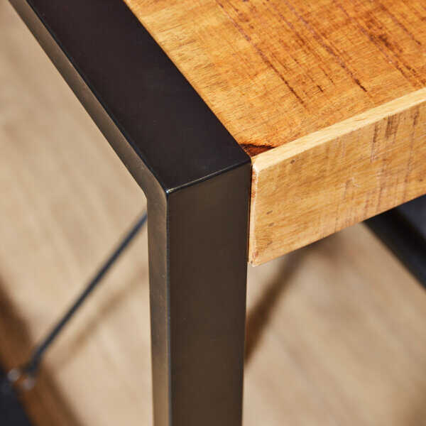 Deze eettafel komt uit de Boaz serie. De eettafel is gemaakt van mangohout en metaal. Het mangohout is behandeld met een blanke lak. Het blad is 2cm dik en is opgedikt naar 8cm door middel van een mangohouten strook. De tafel is voorzien van metalen U-poten met een versteviging onder het blad. Het metaal is afgewerkt met een zwarte lak. Deze eettafel Boaz heeft een breedte van 140cm, een diepte van 80cm en een hoogte van 75cm. Erg mooi in combinatie met de andere meubelen uit de Boaz serie. Bekijk hier de gehele Boaz serie!
