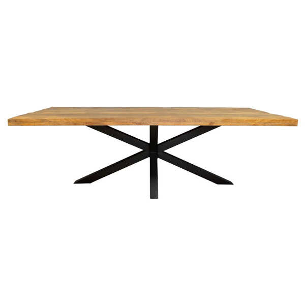 Deze prachtige rechthoekige eetkamertafel Jennifer is gemaakt van mangohout. Het mangohout is behandeld met een blanke lak. Het blad is 6 cm dik, waarvan 3 cm opgedikt. De tafel is voorzien van een metalen matrixpoot met een zwarte lak. De afmeting van deze eetkamertafel is 300x100x76cm. Verkrijgbaar in meerdere maten.