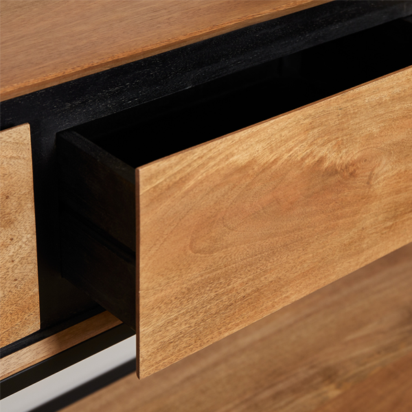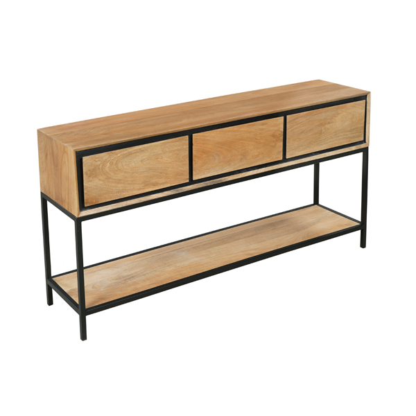 Deze moderne sidetable van mangohout valt op door zijn warme uitstraling en strakke design. Ideaal voor in de hal, woonkamer of als decoratieve toevoeging. Tijdloos, veelzijdig en altijd een blikvanger!