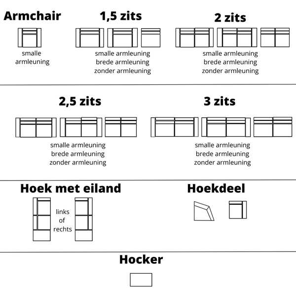 Deze mooie hoekbank is leverbaar in tal van stoffen en leersoorten in verschillende kleuren. Ook is er de keuze voor een smalle of brede armleuning met 3 verschillende stiknaden. Geheel naar je eigen smaak samen te stellen.
