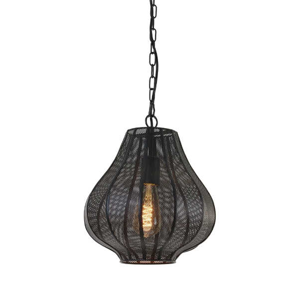 Deze MICHA hanglamp is van het Nederlandse merk Light & Living. De stoere kap van de lamp heeft ronde vormen en is gemaakt van mat zwart metaal. Wanneer de lamp aanstaat zal het licht zachtjes door het raster schijnen, met als gevolg speelse lichtpatronen op de muur. Hiermee creëer sfeer in huis! De afmeting van hanglamp MICHA is Ø27x33cm.