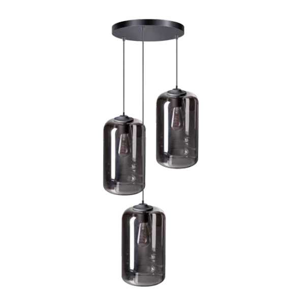 Hanglamp The John 3-lichts – Zwart met smoke glas